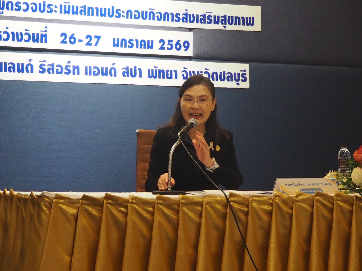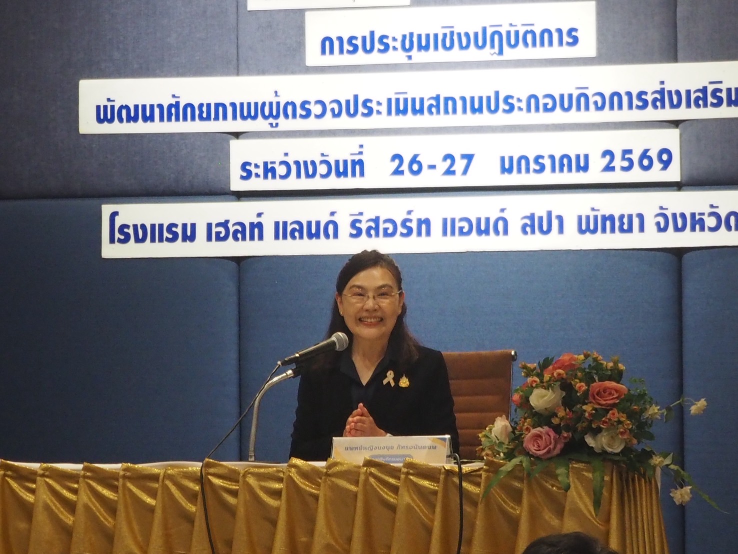 เมื่อวันที่ 26 มกราคม 2569 แพทย์หญิงนงนุช ภัทรอนันตนพ รองอธิบดีกรมอนามัย เป็นประธานเปิดการประชุมเชิงปฏิบัติการพัฒนาศักยภาพผู้ตรวจประเมินสถานประกอบกิจการส่งเสริมสุขภาพ ที่จัดขึ้นระหว่างวันที่ 26-27 มกราคม 2569 ณ โรงแรมเฮลท์ แลนด์ รีสอร์ต แอนด์ สปา จังหวัดชลบุรี พร้อมด้วย แพทย์หญิงทิพา ไกรลาศ ผู้อำนวยการสำนักส่งเสริมสุขภาพ เป็นผู้กล่าวรายงาน