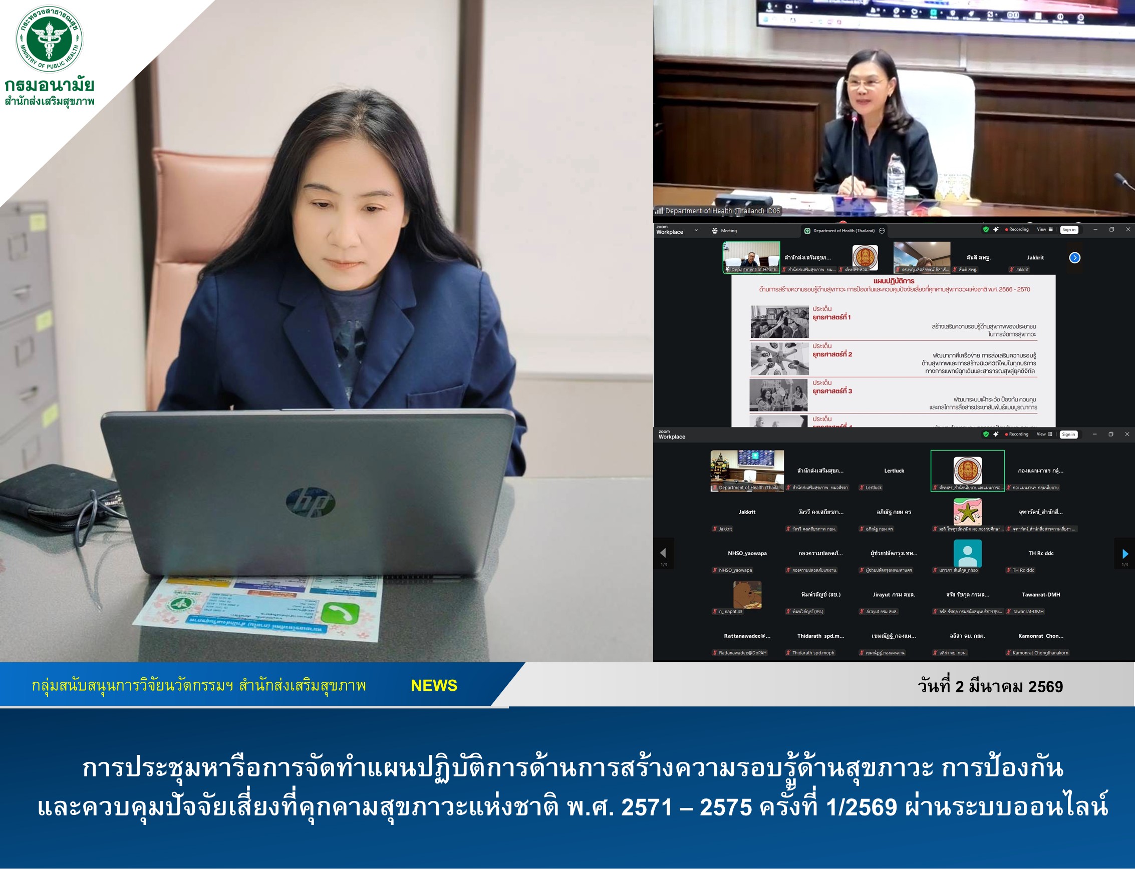 รประชุมหารือการจัดทำแผนปฏิบัติการด้านการสร้างความรอบรู้ด้านสุขภาวะ การป้องกัน และควบคุมปัจจัยเสี่ยงที่คุกคามสุขภาวะแห่งชาติ พ.ศ. 2571 – 2575 ครั้งที่ 1/2569 ผ่านระบบออนไลน์