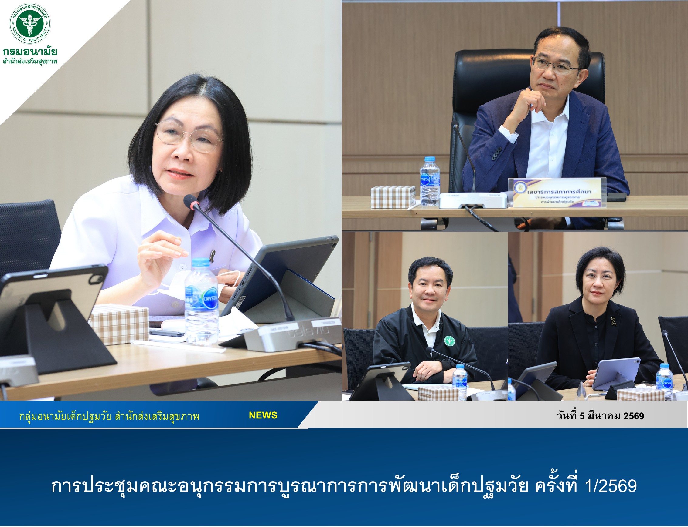 วันนี้ (5 มีนาคม 2569) แพทย์หญิงอัมพร เบญจพลพิทักษ์ อธิบดีกรมอนามัย พร้อมด้วยนายแพทย์ปกรณ์ ตุงคะเสรีรักษ์ รองอธิบดีกรมอนามัย แพทย์หญิงทิพา ไกรลาศ ผู้อำนวยการสำนักส่งเสริมสุขภาพ นายแพทย์สุรัตน์ ผิวสว่าง รองผู้อำนวยการสำนักส่งเสริมสุขภาพ และบุคลากรกลุ่มอนามัยเด็กปฐมวัย เข้าร่วมประชุมคณะอนุกรรมการบูรณาการการพัฒนาเด็กปฐมวัย ครั้งที่ 1/2569 โดยได้รับฟังและให้ข้อเสนอแนะการขับเคลื่อนงานด้านเด็กปฐมวัย ของกรมกิจการสตรีและสถาบันครอบครัว และสำนักงานคณะกรรมการการศึกษาขั้นพื้นฐาน และพิจารณาแผนการขับเคลื่อนงานของคณะอนุกรรมการฯ ปีงบประมาณ พ.ศ. 2569 ณ ห้องประชุมสิปปนนท์ เกตุทัต ชั้น 2 อาคาร 2 สำนักเลขาธิการสถาการศึกษา