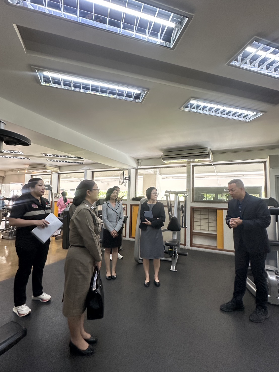 เมื่อเสร็จสิ้นการประชุม ประธานพร้อมด้วยบุคลากรจากสถาบันเวชศาสตร์วิถีชีวิต สำนักส่งเสริมสุขภาพ และกองกิจกรรมทางกายเพื่อสุขภาพ ได้นำคณะบุคลากรของกองบัญชาการตำรวจตระเวนชายแดนเข้าเยี่ยมชมห้องออกกำลังกายเพื่อสุขภาพของกรมอนามัย (ห้องฟิตเนส) เพื่อศึกษาแนวทางการส่งเสริมสุขภาพด้วยเครื่องมือและอุปกรณ์ออกกำลังกาย