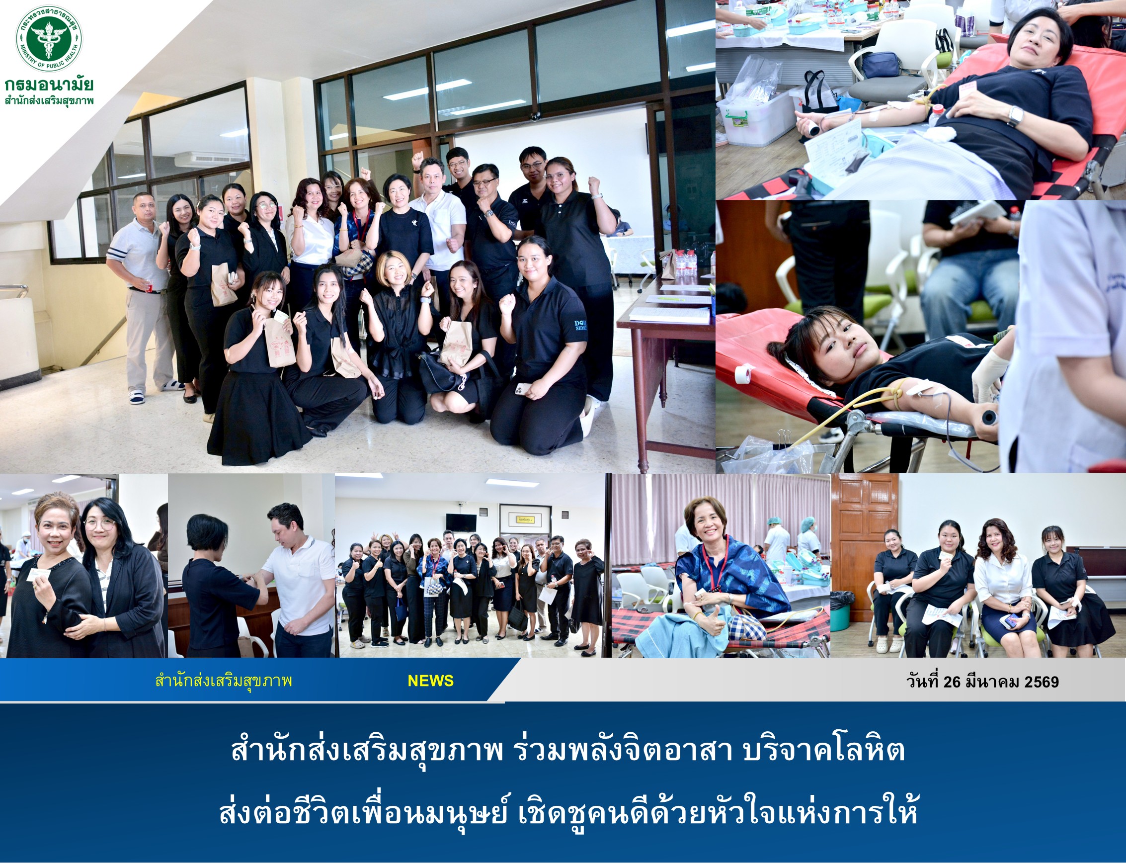 ำนักส่งเสริมสุขภาพ ร่วมพลังจิตอาสา บริจาคโลหิต ส่งต่อชีวิตเพื่อนมนุษย์ เชิดชูคนดีด้วยหัวใจแห่งการให้