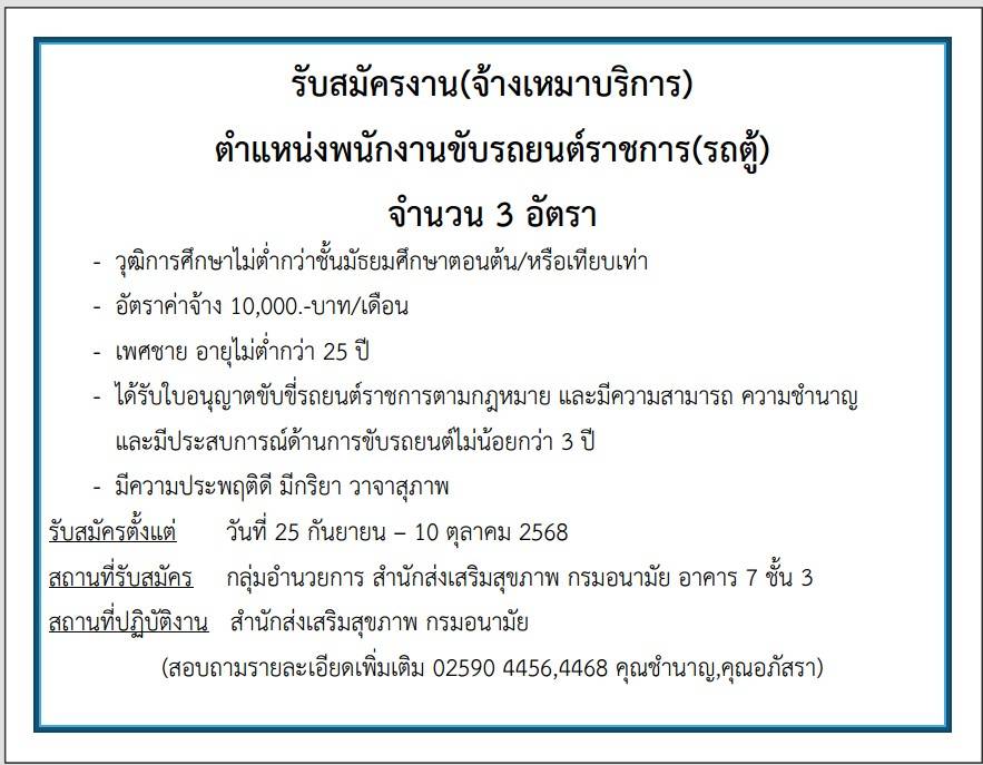บสมัครงานจ้างเหมาบริการ ตำแหน่งพนักงานขับรถยนต์ราชการ จำนวน 3 อัตรา