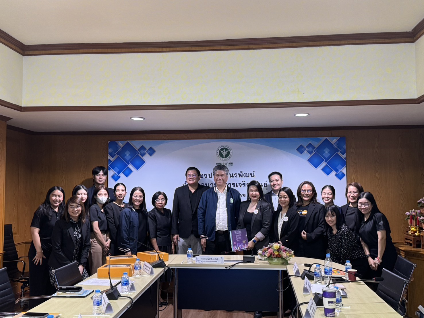 เมื่อวันศุกร์ที่ 23 มกราคม 2569 แพทย์หญิงทิพา ไกรลาศ ผู้อำนวยการสำนักส่งเสริมสุขภาพ มอบหมายให้ นางบังอร สุภาเกตุ หัวหน้าศูนย์ประสานงานโครงการพระราชดำริ โครงการเฉลิมพระเกียรติและโครงการที่เกี่ยวเนื่องกับพระบรมวงศานุวงศ์ และส่งเสริมสุขภาพผู้มีความหลากหลายทางเพศและคนพิการ พร้อมด้วย นางสาวนฤมล สันหนู นางสาวพีรดา พูลหลำ นายธีรเดช ทองเกลี้ยง สำนักส่งเสริมสุขภาพ ร่วมประชุมเพื่อหารือเรื่องความร่วมมือในเรื่องสุขภาพผู้สูงวัย ครอบครัวและสุขภาวะทางเพศ และอนามัยเจริญพันธ์ของผู้สูงวัยและผู้มีความหลากหลายทางเพศ โดยมี ดร.นพ.บุญฤทธิ์ สุขรัตน์ ผู้อำนวยการสำนักอนามัยการเจริญพันธุ์ ให้การต้อนรับนางสาวสิริลักษณ์ เชียงว่อง หัวหน้าสำนักงานกองทุนประชากรแห่งสหประชาชาติ (UNFPA) ประจำประเทศไทย และคณะ ในการนี้ ทันตแพทย์ณัฐพงค์ กันทะวงค์ ผู้อำนวยการสำนักอนามัยผู้สูงอายุ และนักวิชาการที่เกี่ยวข้องจากสำนักอนามัยการเจริญพันธุ์ และสำนักอนามัยผู้สูงอายุ เข้าร่วมแลกเปลี่ยนและกำหนดแนวทางการดำเนินงานร่วมกัน