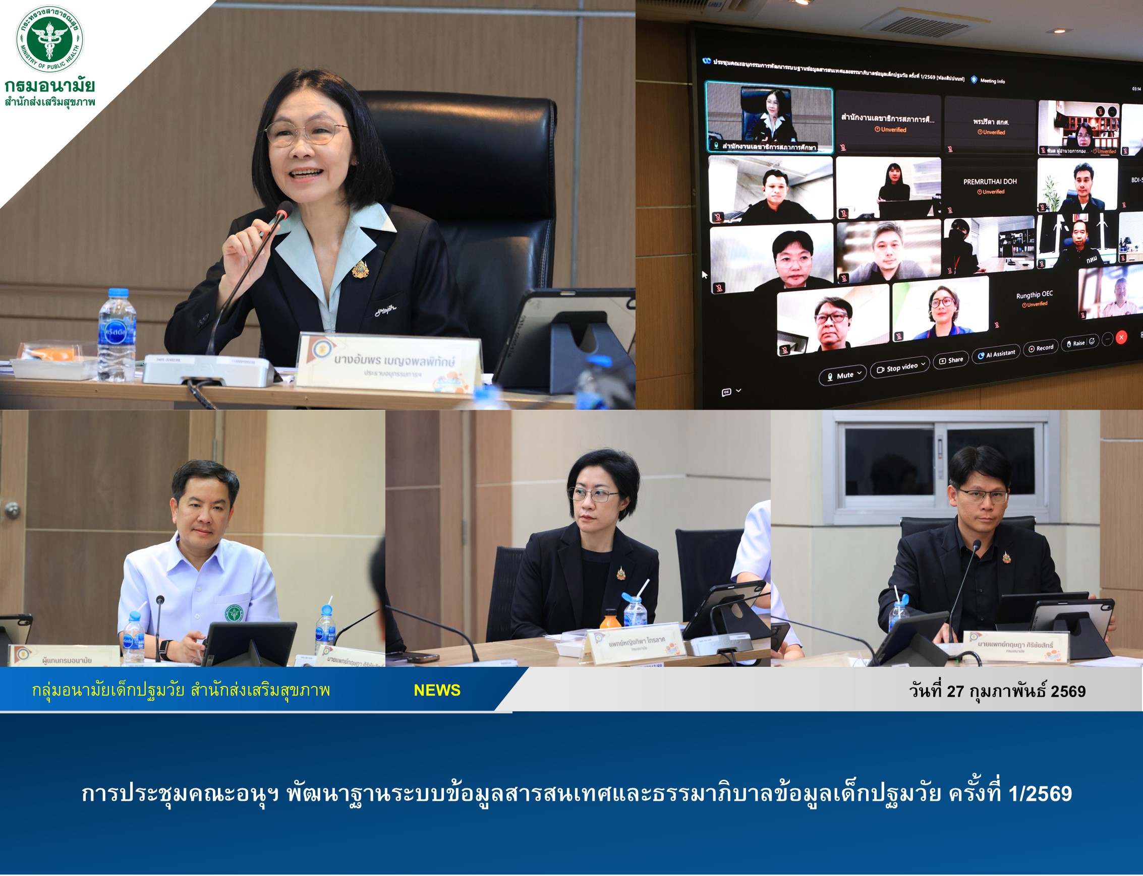 เมื่อวันที่ 27 กุมภาพันธ์ 2569 แพทย์หญิงอัมพร เบญจพลพิทักษ์ อธิบดีกรมอนามัย เป็นประธานในการประชุมคณะอนุฯ พัฒนาฐานระบบข้อมูลสารสนเทศและธรรมาภิบาลข้อมูลเด็กปฐมวัย ครั้งที่ 1/2569 พร้อมด้วย นายแพทย์ปกรณ์ ตุงคะเสรีรักษ์ รองอธิบดีกรมอนามัย นายแพทย์กฤษฎา ศิริชัยสิทธิ์ ผู้อำนวยการศูนย์อนามัยที่ 8 อุดรธานี แพทย์หญิงทิพา ไกรลาศ ผู้อำนวยการสำนักส่งเสริมสุขภาพ และบุคลากรกลุ่อนามัยเด็กปฐมวัย เข้าร่วมประชุมเพื่อพิจารณาการจัดทำฐานข้อมูลเด็กปฐมวัย โดยบูรณาการข้อมูลจากทุกภาคส่วนที่ขับเคลื่อนงานด้านเด็กปฐมวัย ณ ห้องประชุมสิปปนนท์ เกตุทัต อาคาร 2 ชั้น 2 สำนักงานเลขาธิการสภาการศึกษา