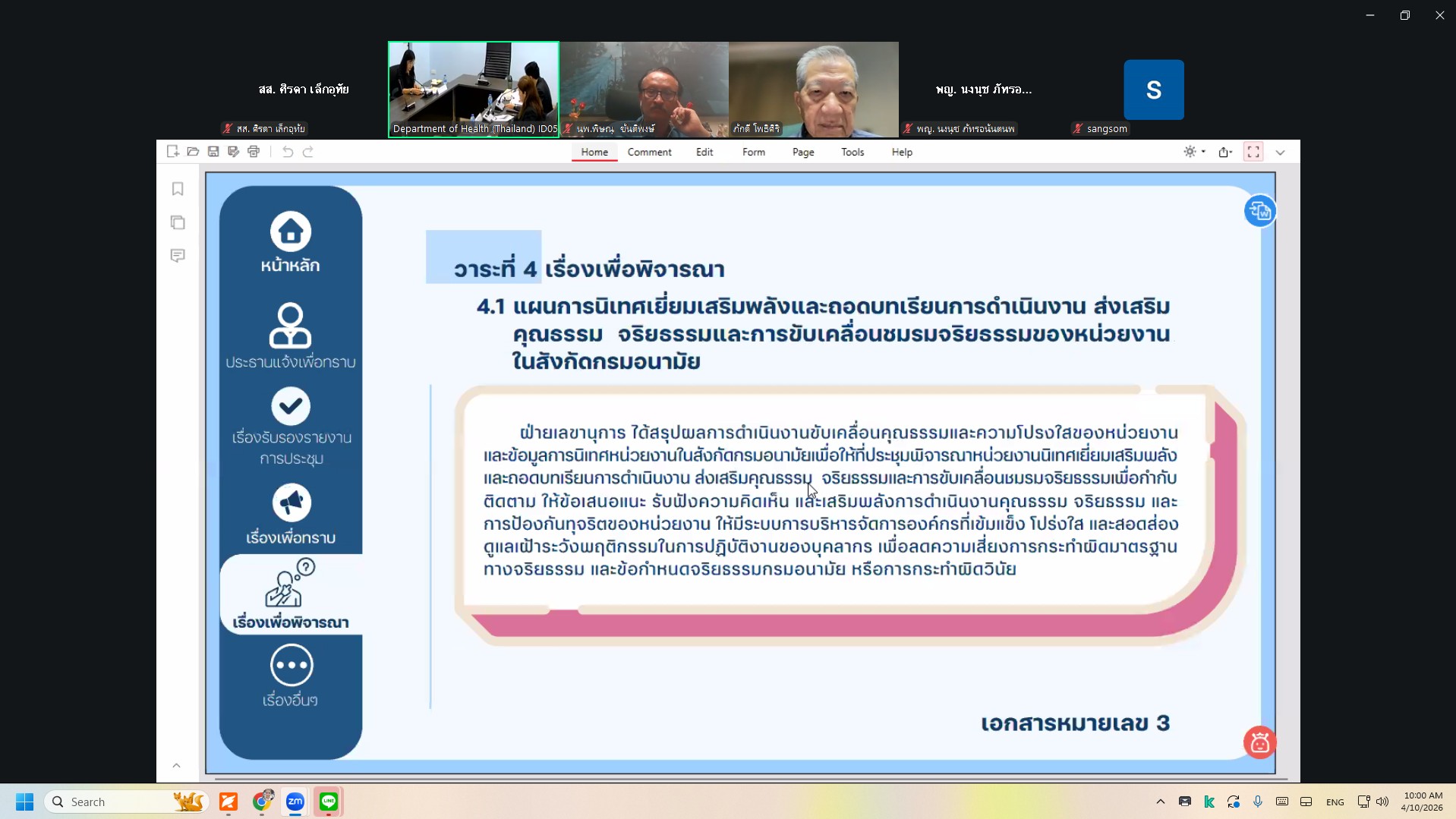 รประชุมคณะกรรมการจริยธรรมประจำกรมอนามัย ครั้งที่ 3/2569 ผ่านสื่ออิเล็กทรอนิกส์ (Video Conference)
